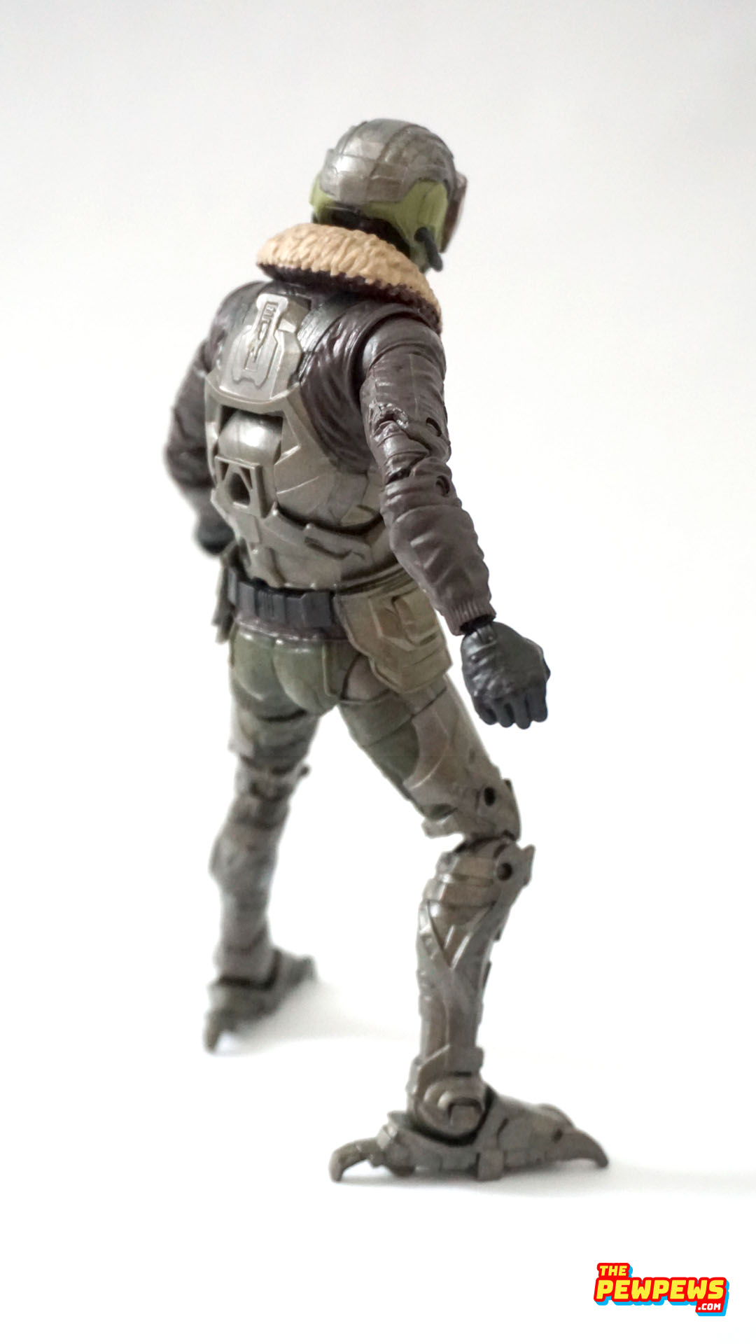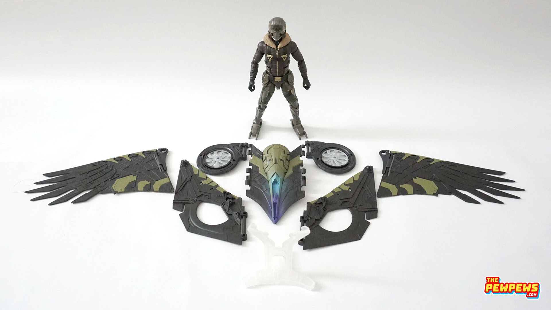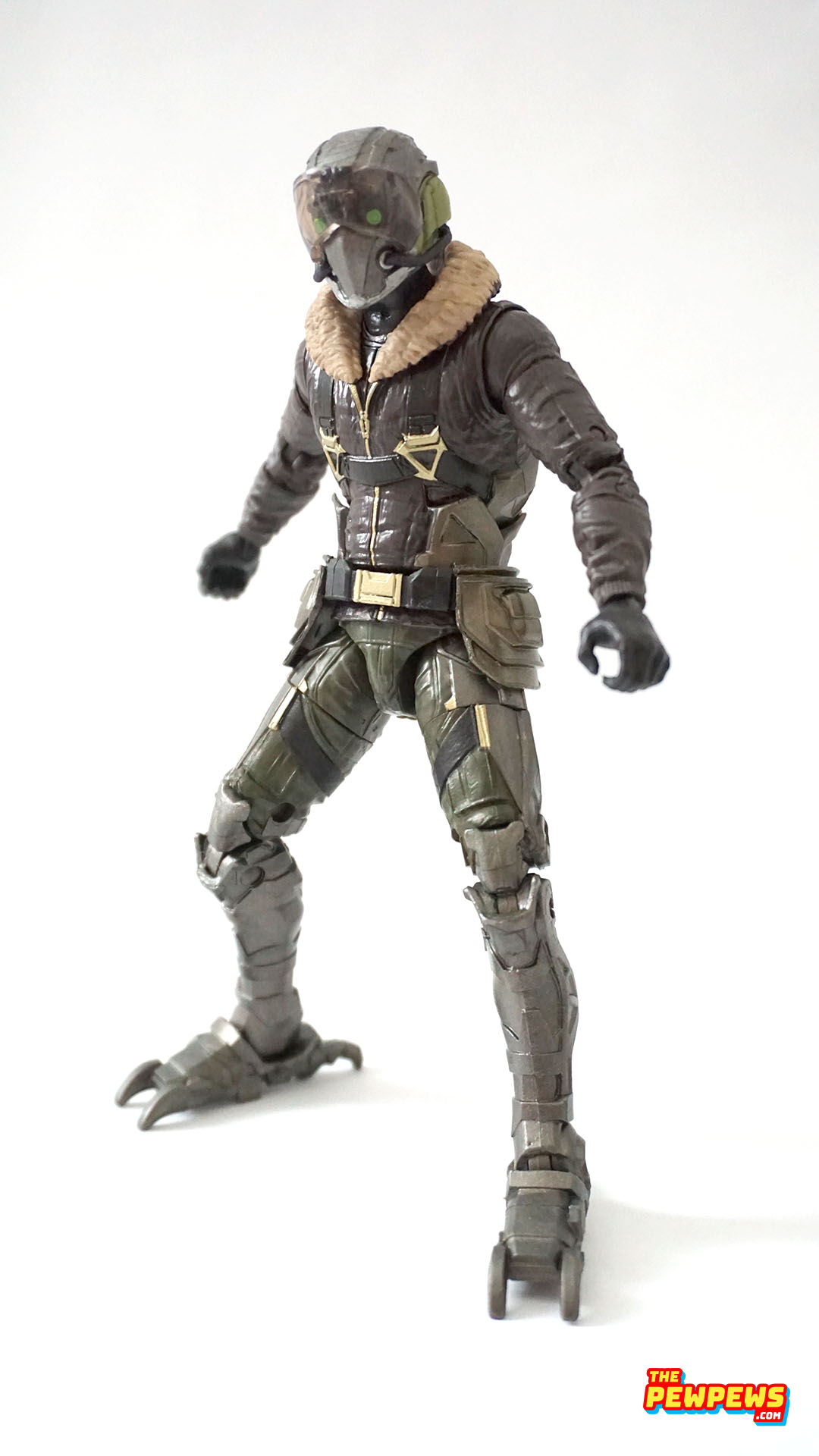 Figure ini stand dengan tinggi 6’5”. Head-nya quite accurate helmet sculpt dengan translucent plastic buat glass over visor-nya dengan ball-jointed neck articulation. Body-nya sculpt aviator jacket coklat dengan fur coat dan harness untuk wings-nya dengan ab-crunch articluation. Hands-nya both grip hand. Legs-nya deep green pants dengan silver talons dengan double jointed knee articulation.